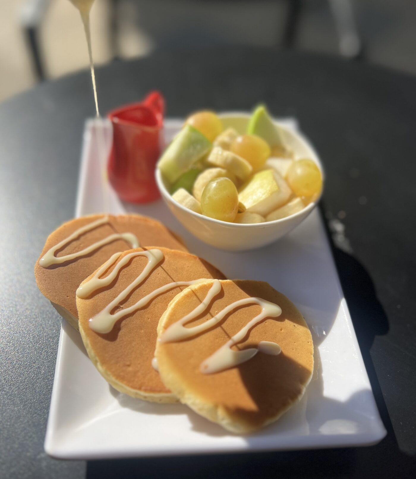 Pancake e shoqeruar me fruta te stines dhe qumesht Milk