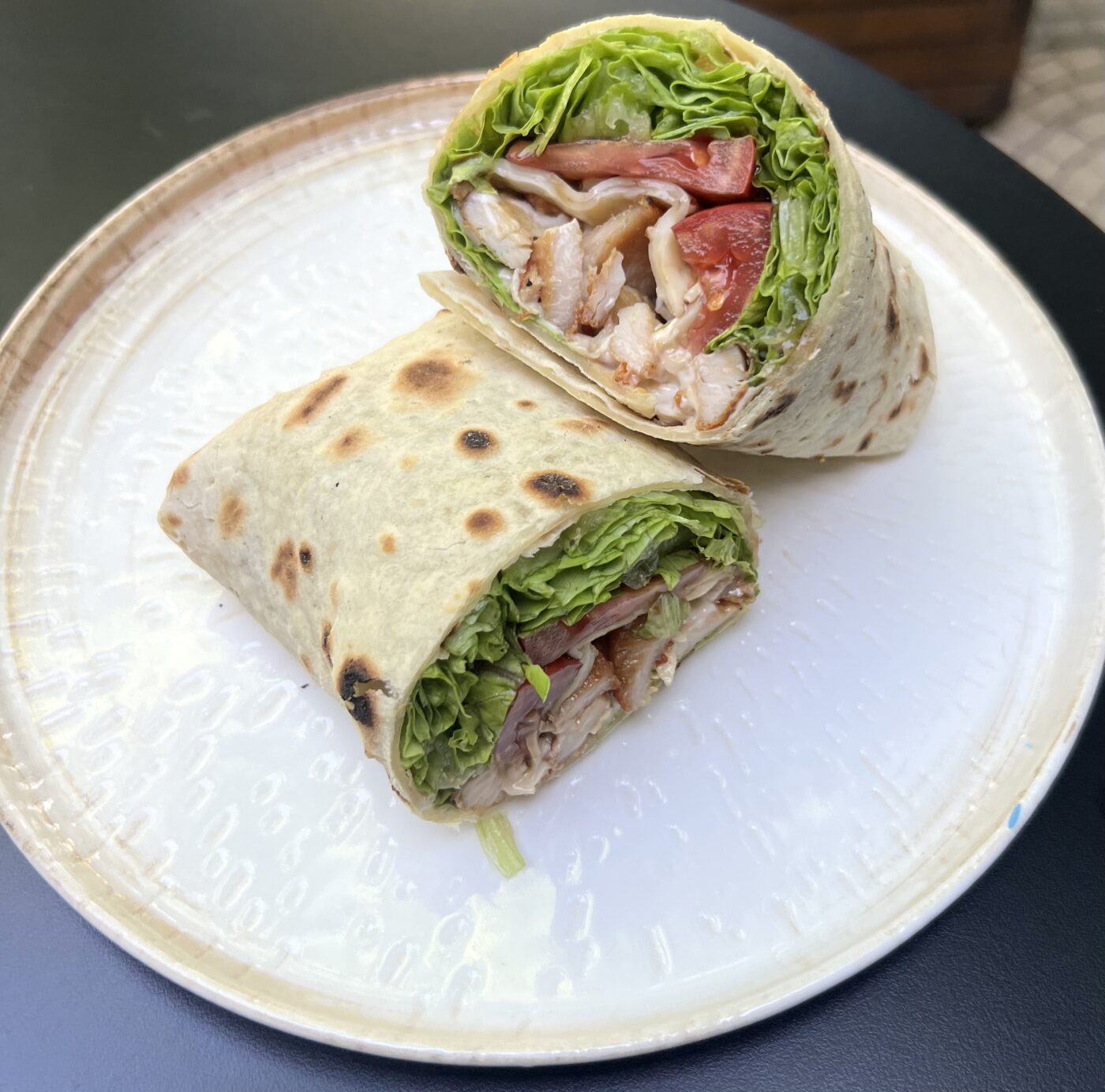Fileto pule ,djathe guda , majoneze, domate , sallate jeshile , aceto balsamike